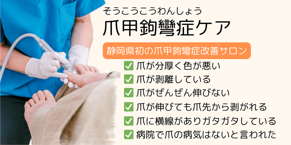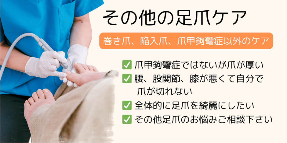※爪甲鉤彎症以外の両足の爪ケアもおこないます。